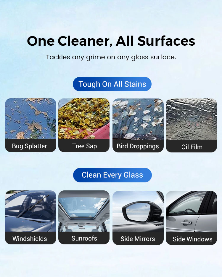 SOKOLDALÚ AUTÓÁPOLÓ MEGOLDÁS:Hatékony az oldalsó ablakokon, tükrökön és ablaktörlő lapátokon. Üveg zuhanyajtókon és háztartási ablakokon is hatékony, így többcélú tisztítószer járművekhez és otthoni használatra egyaránt.