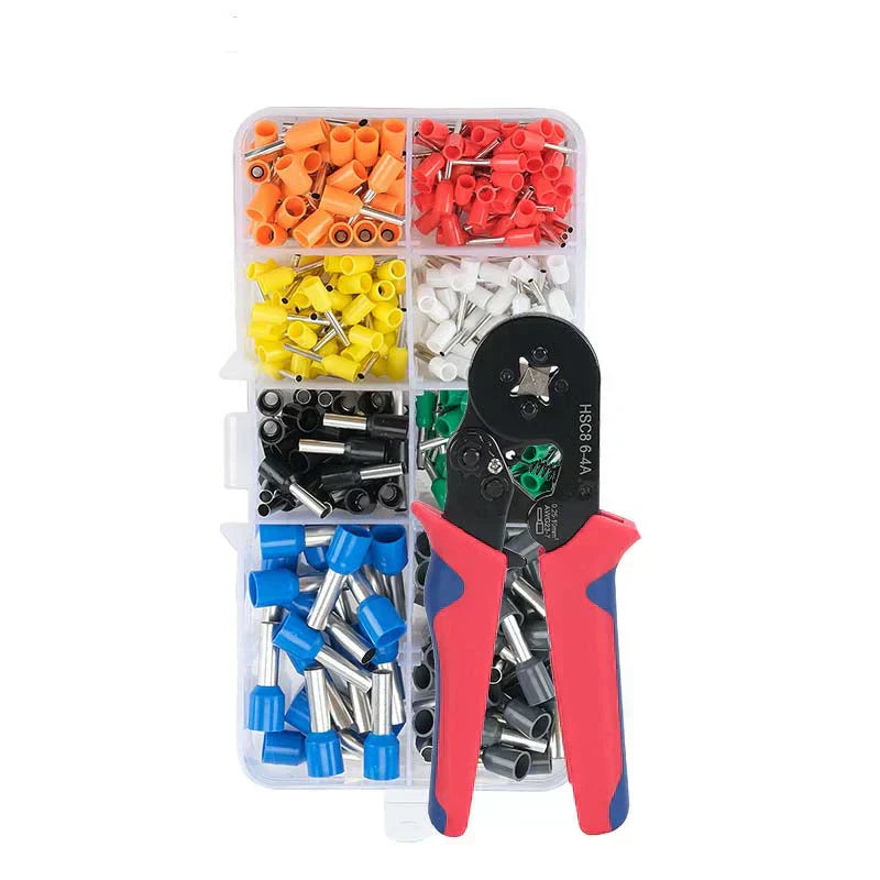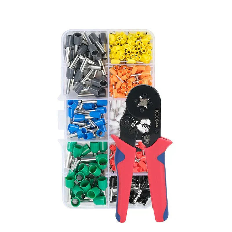 Komplett krimpszerszĂĄmkĂ©szlet â Minden rendelĂ©s egy krimpszerszĂĄmmal Ă©s 800 szigetelt kĂĄbelcsatlakozĂłval rendelkezik a kis barkĂĄcsolĂĄsi projektek Ă©s nagy elektromos javĂtĂĄsok tĂĄmogatĂĄsĂĄra.