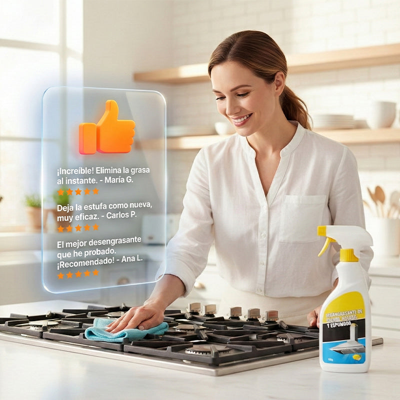IDŐMEGTAKARÍTÓ ALKALMAZÁS - Egyszerűen permetezze be és törölje le a makacs olajfoltokat. Ez az erős tisztítószer gyorsan hat, így nem kell szétszerelni a konyhai eszközöket, és értékes időt és energiát takaríthat meg a takarítás során.