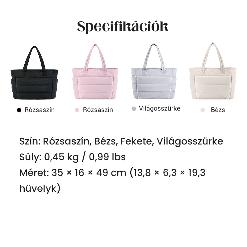 👜 Könnyű női pufi táska | Divatos és puha kivitel mindennapi használatra
