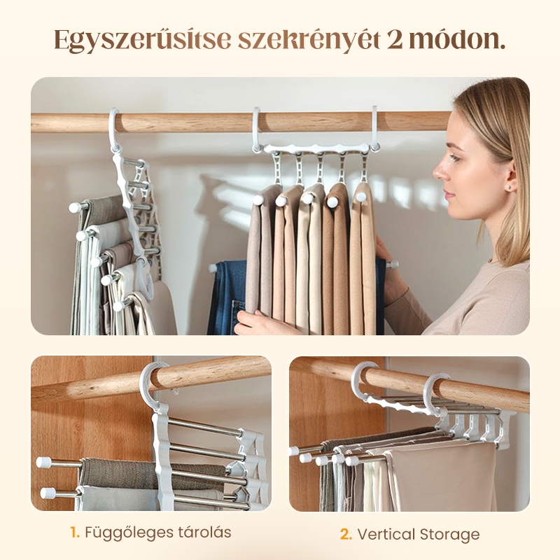 ✨ Multifunkcionális nadrágtartó – helytakarékos és praktikus 🌟 | Ruhák rendszerezése egyszerűen, gardróbtól az utazásig