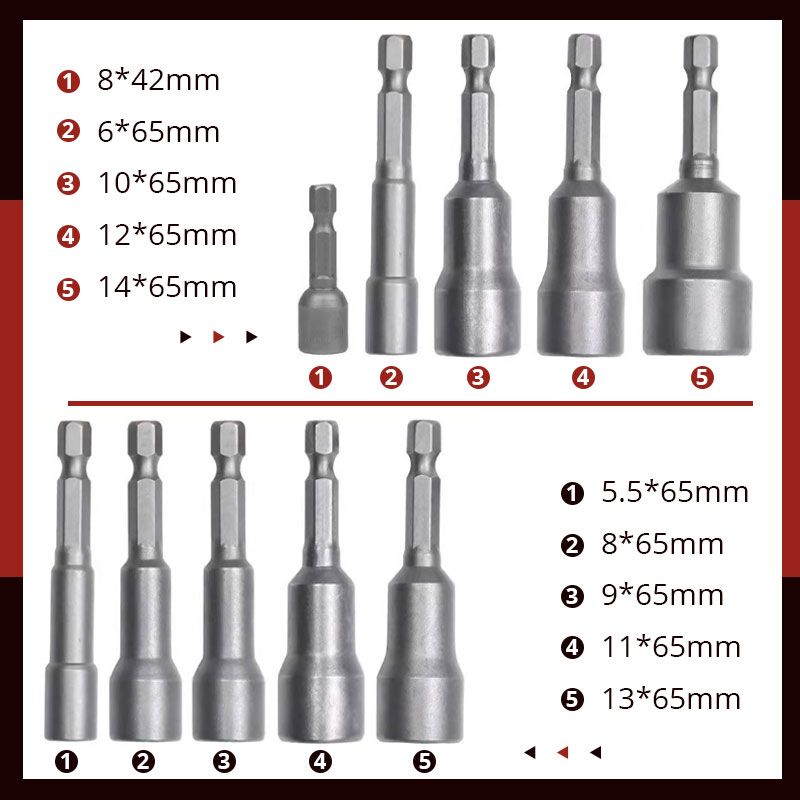 Nagy pontosságával és erős nyomatékával könnyen kezelhető mindenféle hatlapú csavar, valamint rozsdás csavarok, anyák stb. 1 készlet 5 specifikációval, hogy kielégítse az Ön igényeit a különböző méretű hatlapú csavarok becsavarásához!
