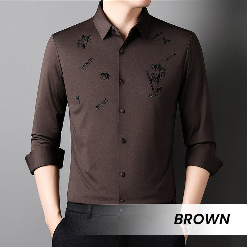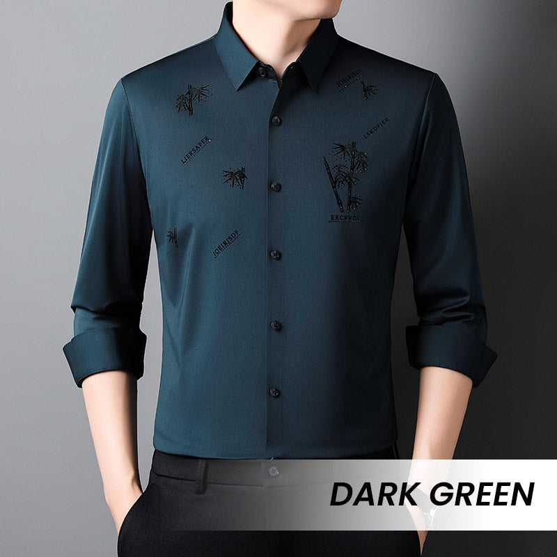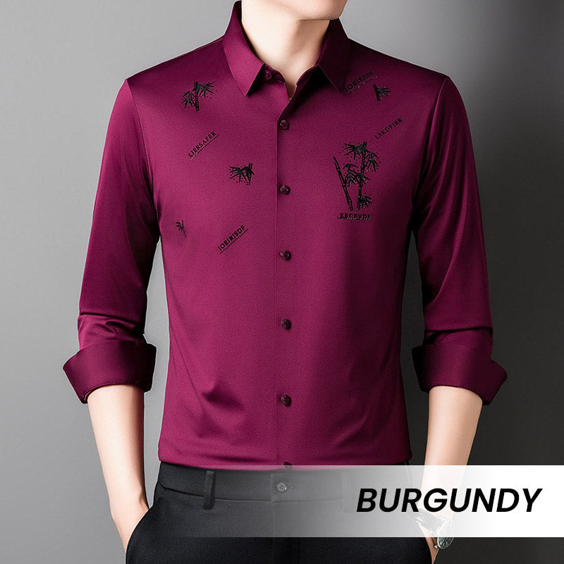 FINOM BAMBUSZNYOMTATÁS: A bambusznyomtatással díszített ing természetes eleganciát kölcsönöz, így alkalmas mind hétköznapi, mind üzleti viseletre.
