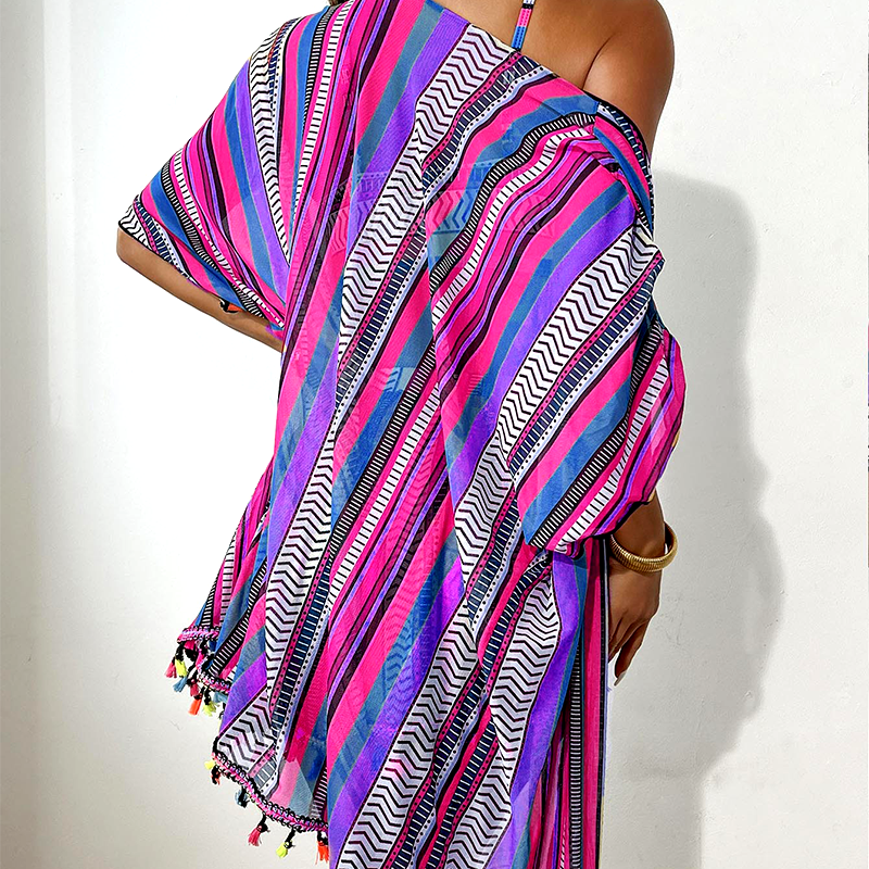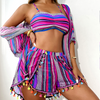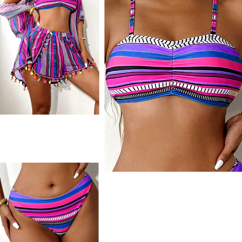 Package Includes: 1ĂStriped Spaghetti Bikini 4-Piece Set