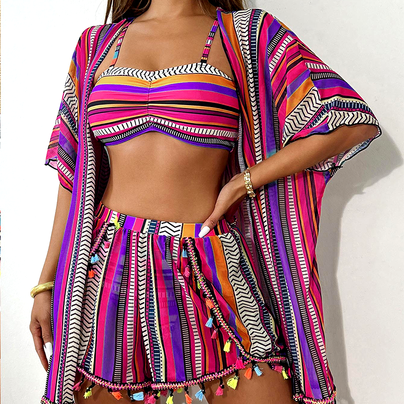 Style: Bikini Top+Bikini Panties+ Swim Cover-Up + Shorts