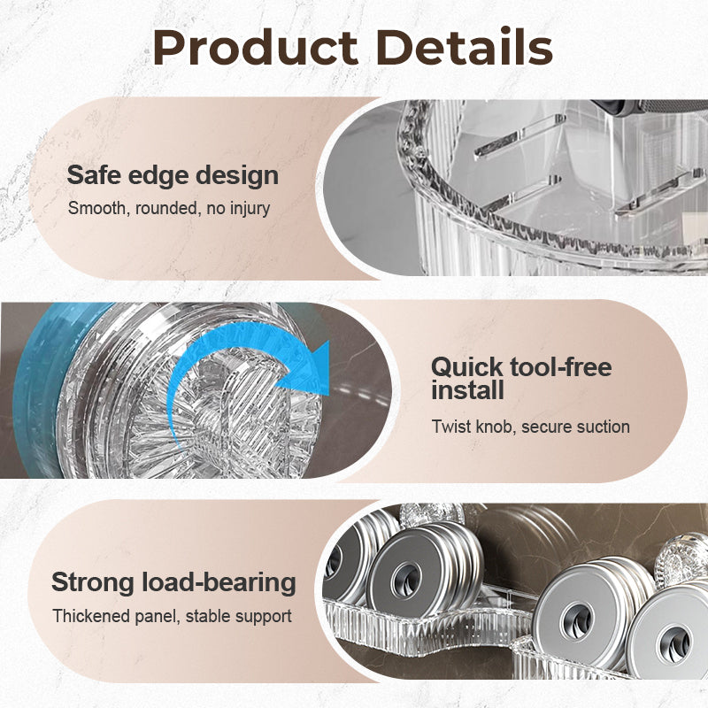 KĂNNYư, SZERSZĂM NĂLKĂLI FELSZERELĂS: egyszerƱen forgassa el Ă©s hĂșzza meg a gombot a tapadĂłkorong biztonsĂĄgos rögzĂtĂ©sĂ©hez. A vĂĄkuumtapadĂĄsos kialakĂtĂĄs biztosĂtja a stabilitĂĄst anĂ©lkĂŒl, hogy a falakat vagy felĂŒleteket megsĂ©rtenĂ©. A többszörösen finoman csiszolt Ă©lek garantĂĄljĂĄk a biztonsĂĄgos mƱködĂ©st, megakadĂĄlyozva a karcolĂĄsokat Ă©s a kĂ©zsĂ©rĂŒlĂ©seket.